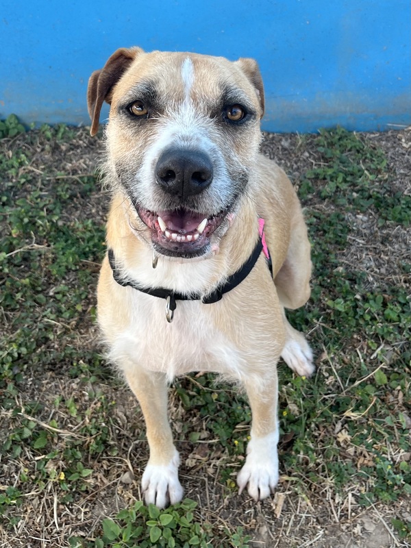 Boop is an Irish Wolfhound cross with a spunky personality and a zest for life. She's a social butterfly who adores spending time with her people and playing with other dogs. Always up for fun, Boop loves toys, mealtimes, and especially food enrichment activities that keep her busy and satisfied.