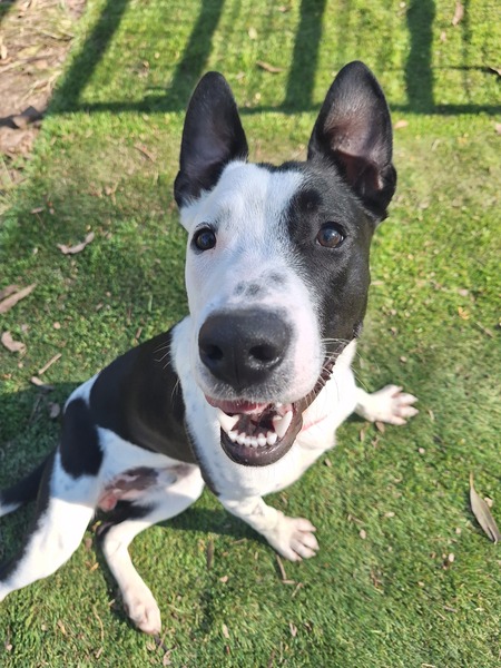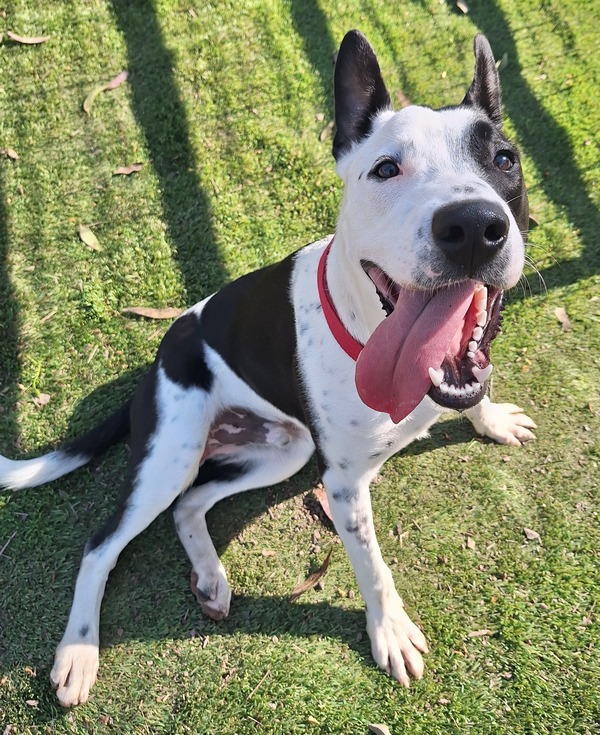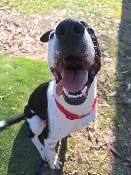 Melon would love go to a home with another friendly, social dog who can help show him the ropes and give him the confidence to settle in. He's still learning the basics, so he'll need an owner committed to ongoing training, patience, and lots of positive reinforcement, but he's already mastered his best 'sit', 'lay down' and 'shake'!