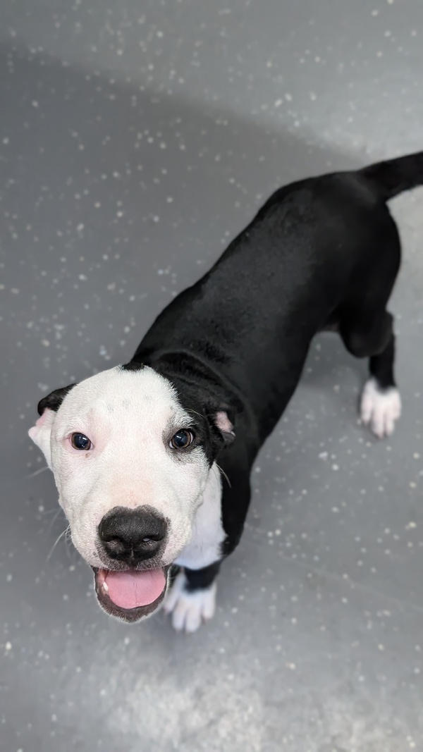 I love to romp around and play games, especially if they involve a bit of roughhousing, my sister and I get up to lots of mischief! I'm also quite the foodie - treats are the way to my heart! Despite my playful side, I'm really sweet and mellow too, although a little goofy sometimes! I enjoy making new friends and am always up for a cuddle or a gentle pat, but I am a big girl, so you'll have to be prepared for me to take up half the bed! I'd love to go to a home with another dog so if you have a friend for me at home then I'd love to meet them first! I am still young so you will need to continue my training please, I want to be the best girl! If you're looking for a loyal companion to bring joy and fun to your home, I'm your pup!