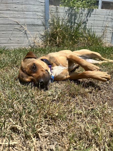 She has also been in a foster home with a cat, and has shown to be social with them even if they don't quite understand her play bows. She is open to a home with a feline friend as long as adopters are willing to allow a slow introduction.