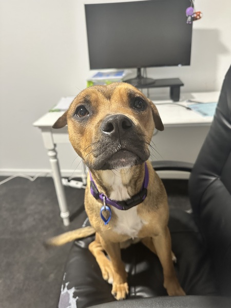 Mia is a sweet, affectionate staffy who would love nothing more than to snuggle up on the couch with you and be apart of the family.