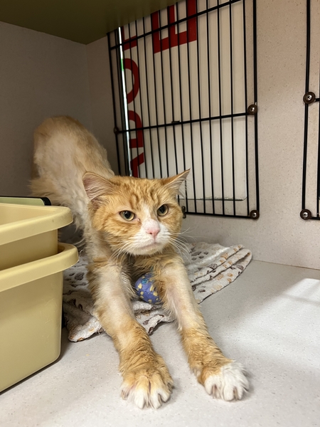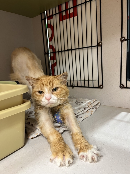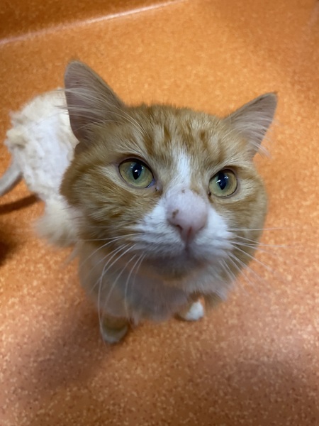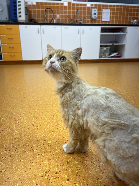 Benji is a striking ginger cat who's had a rough start but is on the road to recovery. He came into care after being found with a paralysis tick, and while he's still regaining his strength, he's already showing signs of resilience. Due to his treatment, Benji has been shaved, but his beautiful orange coat will grow back in no time.