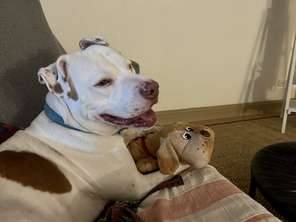 The sweetest big boof you will ever meet. Reiko is a fun loving doggo but sometimes can be a little too silly and takes his love to the next level - which includes, bouncies, kisses and zoomies all over his people. Despite this silly behaviour, he is very smart and loves to learn new things. So far, he already knows, sit, shake, and wait. It is very important for a doggie like Reiko to keep practicing positive and appropriate behaviour around his human friends, so continued training is a must. He loves chicken so this would be a great training tool!!