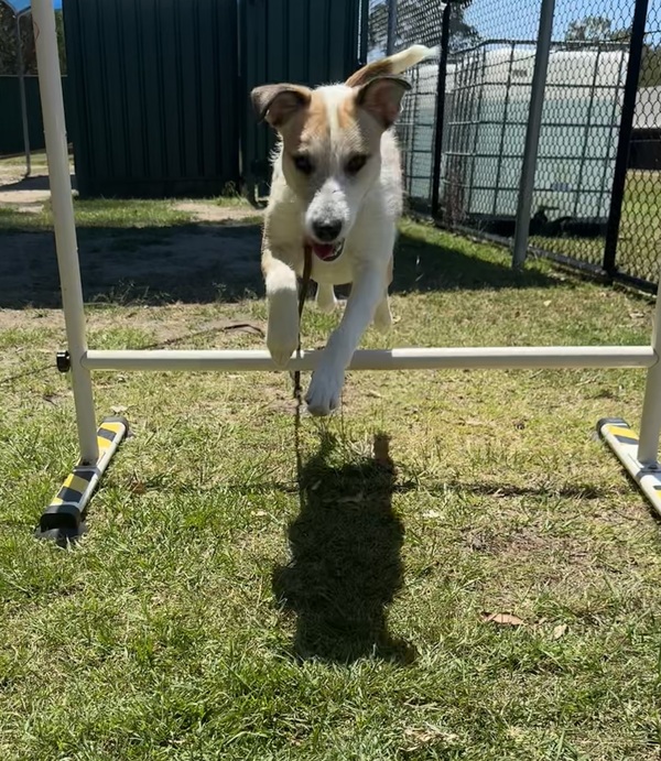 Meet Shelly, a sweet and gentle soul residing in a shelter, awaiting a loving home. Her days are filled with playful moments and cuddles, showcasing her friendly and shy nature. Shelly's intelligence shines through in how quickly she learns new tricks and understands routines. Although she has led a sheltered life, her gentle spirit and loving nature make her the perfect companion. Shelly's readiness to share her love makes her an ideal candidate for adoption. Bring Shelly home and experience the joy of a loyal and affectionate friend. She has lived in a home with multiple dogs, so would love a Doggie playmate. Can be nervous and fearful of other dogs so best suited to a calm, social dog. Shelly is a MED sized dog.