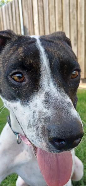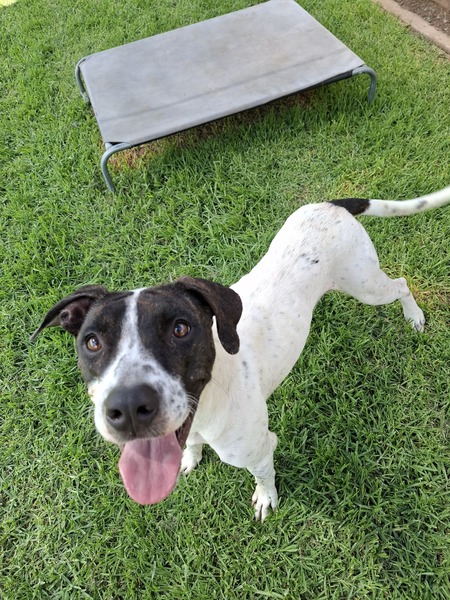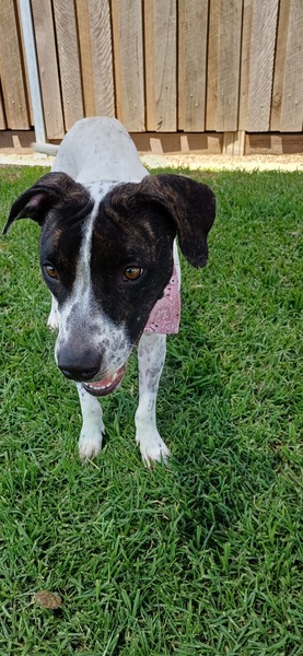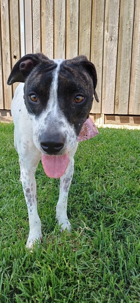 Valkyrie is super food motivated and eager to please, which makes training fun. She knows "sit" and is learning "lie down." She'll do best in a quiet home and would love a calm, social dog friend to help her feel confident.