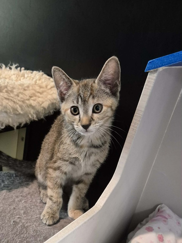 This adorable kitten is full of personality, charm, and love to give. Playful and curious, they're always ready to explore their world, chase toys, and then curl up for a cozy nap with their people.