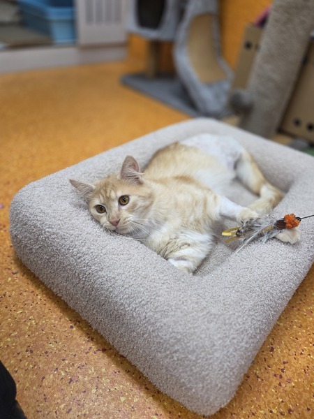 Kramer hasn't had the easiest journey, but his gentle resilience has seen him through, and now he's ready for a fresh start in a loving home where he can finally relax and feel safe. This lovely boy has a calm, easygoing nature and is at that perfect age where life's simple pleasures mean the most-sunny windowsills, cozy naps, and quiet companionship. He is a very chatty boy and if you tickle his chin, he will melt into your arms!