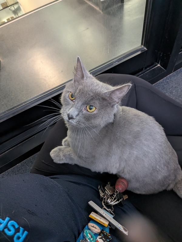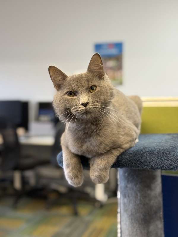 Papa Jo loves having places to perch and hide, so a home with cat trees, scratch posts, cardboard hidey-holes, and comfy shelves will make him feel like a very lucky boy. He's a sensitive guy, so gentle interactions are key-Papa Jo will let you know when he needs a break with little cues like twitchy whiskers or a flicking tail. When that happens, it's time for a switch to toys or enrichment snacks (his favorites!).