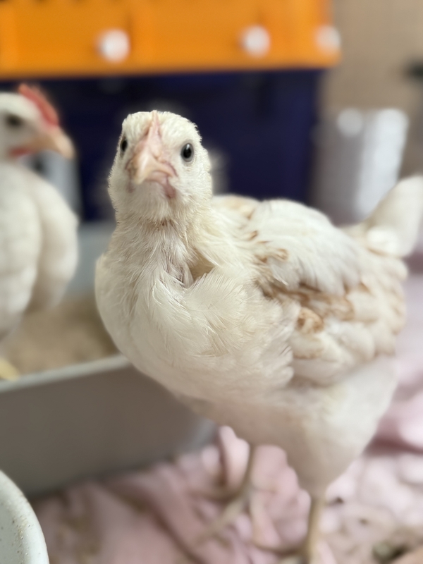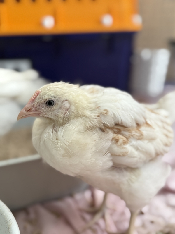 Meet Zoomie! As a baby chick, he or she (they're too young to determine the gender just yet) can be wonderful pets, but they do require specific care, including a warm and safe environment (a brooder) with proper bedding, a heat source, and a clean water and food supply. They are curious and delicate, needing close supervision to protect them from predators and ensure their well-being. But eventually this little individual will make an excellent addition to your backyard or farm. Come in and meet Zoomie!