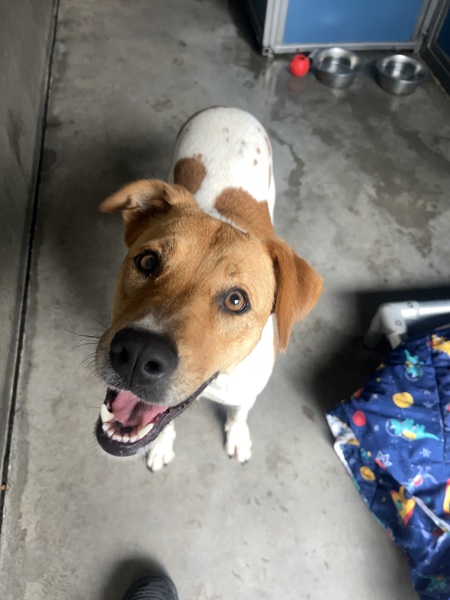 Dido is still working on her basic manners and will need ongoing training. She is food motivated, though she may require a little extra patience. Recommended training includes four-paws-on-the-floor, impulse control, and reinforcing simple cues like sit and lie down.