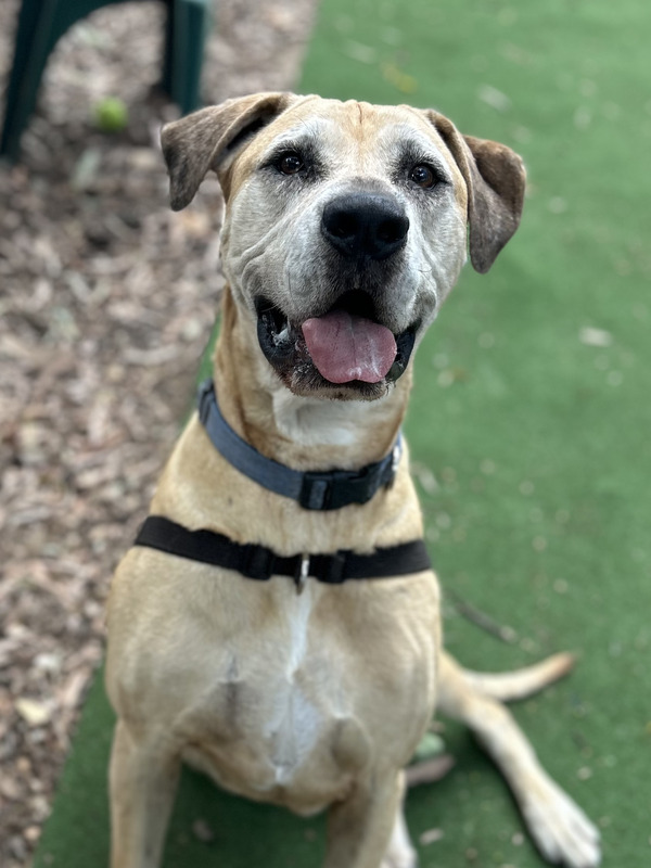 Hi, I'm Wilson! I might be an older guy, but I still have lots of energy! I absolutely love going for my daily walks and will bark at you if you're taking too long! I can get a bit too excited and pull but I'm a very good listener and will slow down if you ask me to! I'm a pretty chill guy, I walk well with the other dogs here, I even ignore their silliness, but I don't appreciate them invading my space. So will definitely need a home with no pestering dogs please! I could be open to another older chill female, but preferably an only dog home where I can get all the loving! I can take some time to warm up to people I don't know, but once I trust you, I absolutely love you! I turn into a goofy boy during play time; I love playing tug with you and fetching the ball! I can be a bit silly during tug and grab where you're holding but if you tell me to leave it, I'll listen straight away! Now because I'm a bit of an older guy I do have some stiff joints, but that can be easily managed and other than that I'm in perfect health! So, if you think I'm your perfect match then come meet me today!