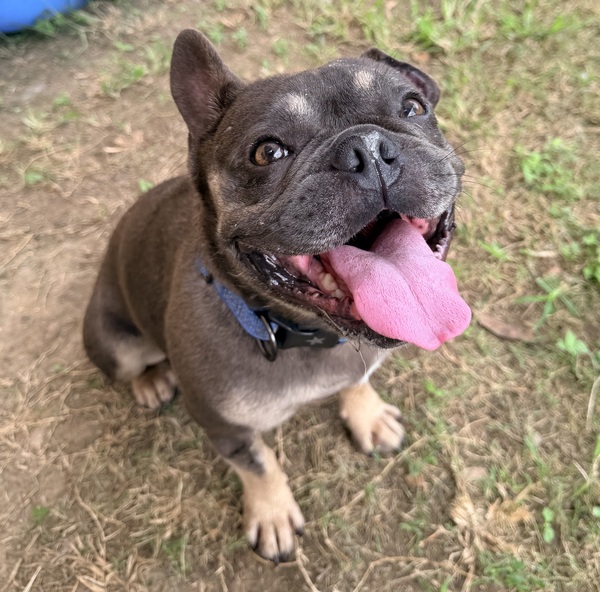 Charlie has lived with a big dog before and could do well with a calm, tolerant canine buddy. He can get a little too excited when meeting new dogs (think dramatic Frenchie screams!), so slow, supervised introductions are a must at adoption time.