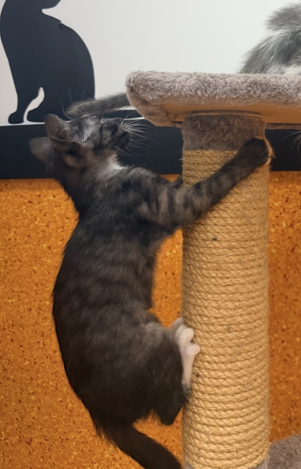 Tihani is a playful, curious little girl who is discovering the world one tiny paw-step at a time. At just 11 weeks old, she's full of kitten energy - chasing toys, pouncing on imaginary treasures, and turning everyday moments into adorable adventures. Whether it's a crinkly ball, a feather wand, or your shoelaces, Tihani is always ready for fun!