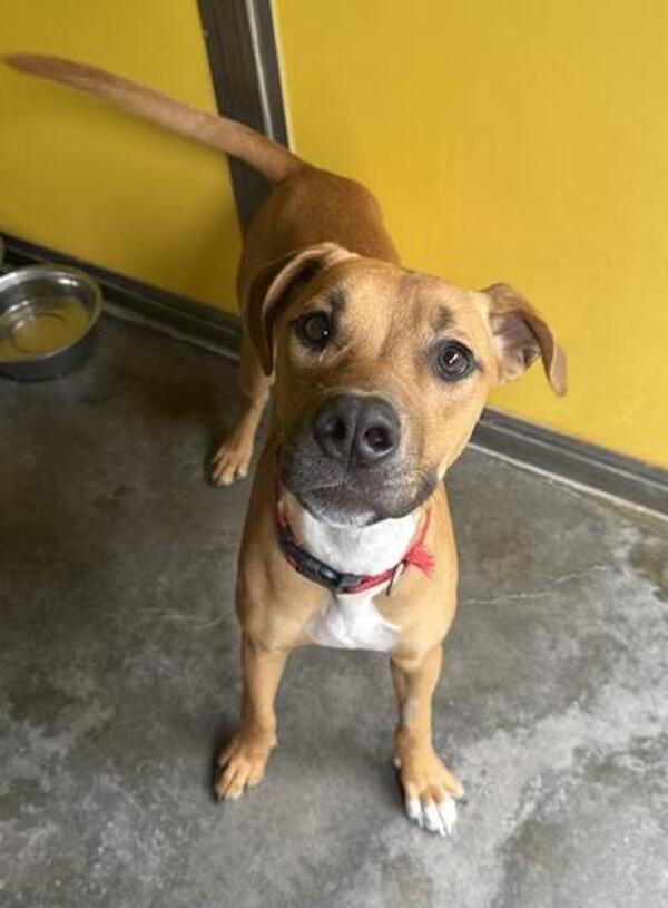 To help him settle successfully, it is recommended that someone be home with him for the first few days. Franklin is best suited to a home with older children due to his nervous nature, and all family members should meet him at the time of adoption. He will also need to meet any resident dogs. While he can be unsure of other dogs and may become a little silly or reactive, he has the potential to do well with a calm, social dog who can guide him and help build his confidence. With patience, understanding, and continued support, Franklin will blossom into a devoted and joyful companion.
