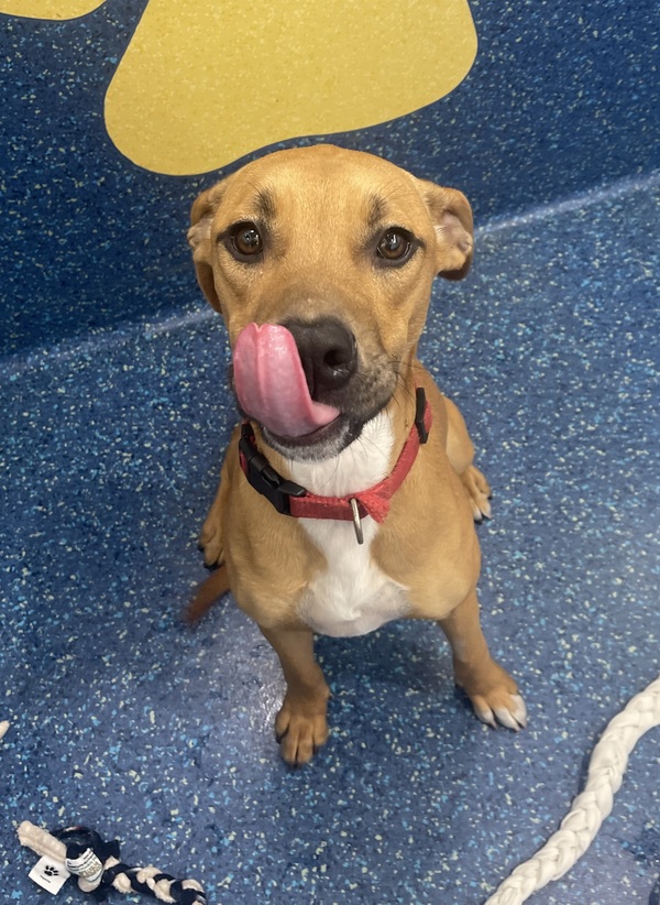 He is a smart boy who enjoys enrichment and has shown a strong interest in wobblers and snuffle mats. Feeding his daily meals through enrichment activities is recommended to keep his mind active and engaged. Franklin can be worried by close handling and restraint, occasionally resulting in nervous wees, so he will need continued work on touch consent and gentle, positive reinforcement training. He already knows how to sit and shake and would love a family willing to continue building on his training.