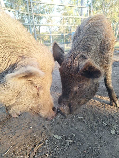 Say hello to Hoggie and Kevin, a pair of inseparables, lovable pigs who are looking for a forever home together. These two gentle souls came in as mates, and their bond is undeniable-they eat together, explore together, and always keep an eye on each other.